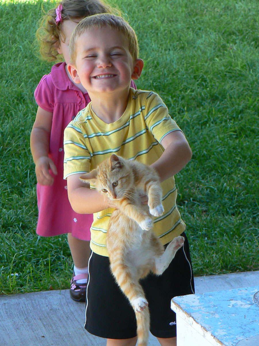 It wanders over quite a bit, and every time my kids just love it. The kitten is extremely patient and lets my kids do whatever they want.