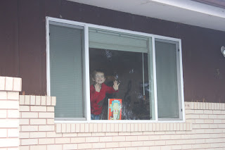It's kind of hard to see in this picture but there is a faint outline of a bird's wings on the window. This is the front window. We often have birds fly into it trying to get in, but they don't usually leave a mark.